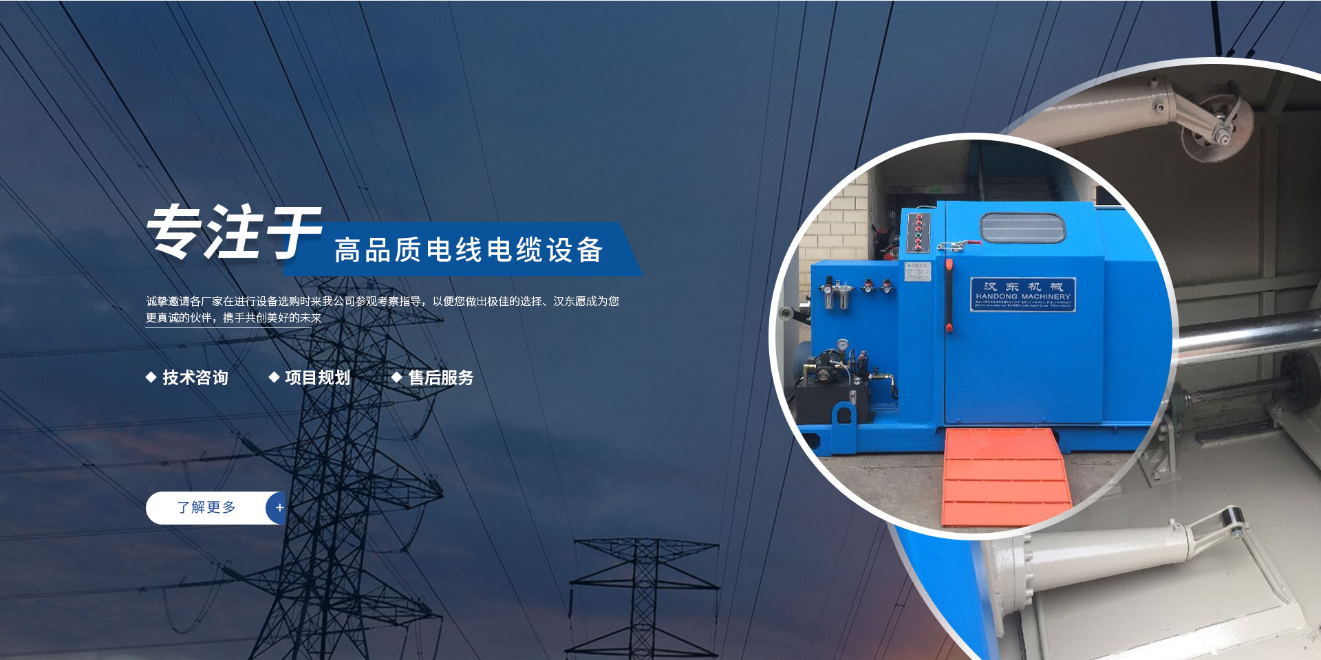常州漢東機械始創(chuàng)于2006年,是集電線電纜機械設(shè)計、開發(fā)、制造、安裝、調(diào)試為一體化的高科技企業(yè)。本公司自開業(yè)以來,積極引進(jìn)日本,歐美等國外電線電纜設(shè)備之先進(jìn)技術(shù),先后成功推出了達(dá)到行業(yè)先進(jìn)水平的電線電纜設(shè)備,主要產(chǎn)品有擠出、繞包、束線、成纜等電線電纜固定設(shè)備。在提供系統(tǒng)設(shè)備的同時,還向客戶提供售前技術(shù)咨詢、項目規(guī)劃、以及售后服務(wù)。我公司本著“以人為本、科技先導(dǎo)、用戶為上”的宗旨,為客戶提供牢靠的產(chǎn)品與省心的服務(wù)。漢東愿成為您更真誠的伙伴,攜手共創(chuàng)美好的未來!